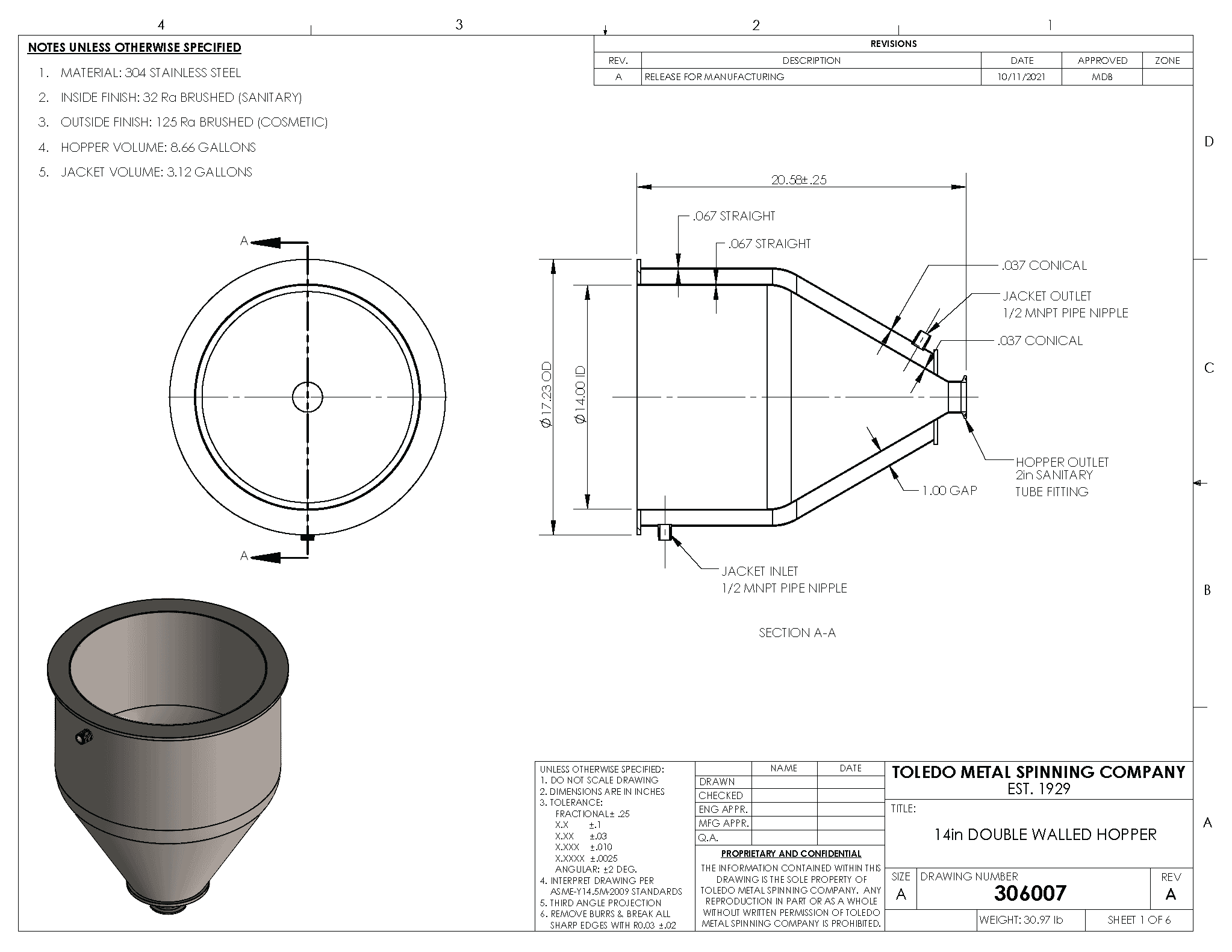 | 312014 | ![]() | Double Walled Funnel 24" Inner Funnel, 6" Sanitary Fitting, 32ra Inside, 125ra Outside | $8,586.46 | ![]() | |