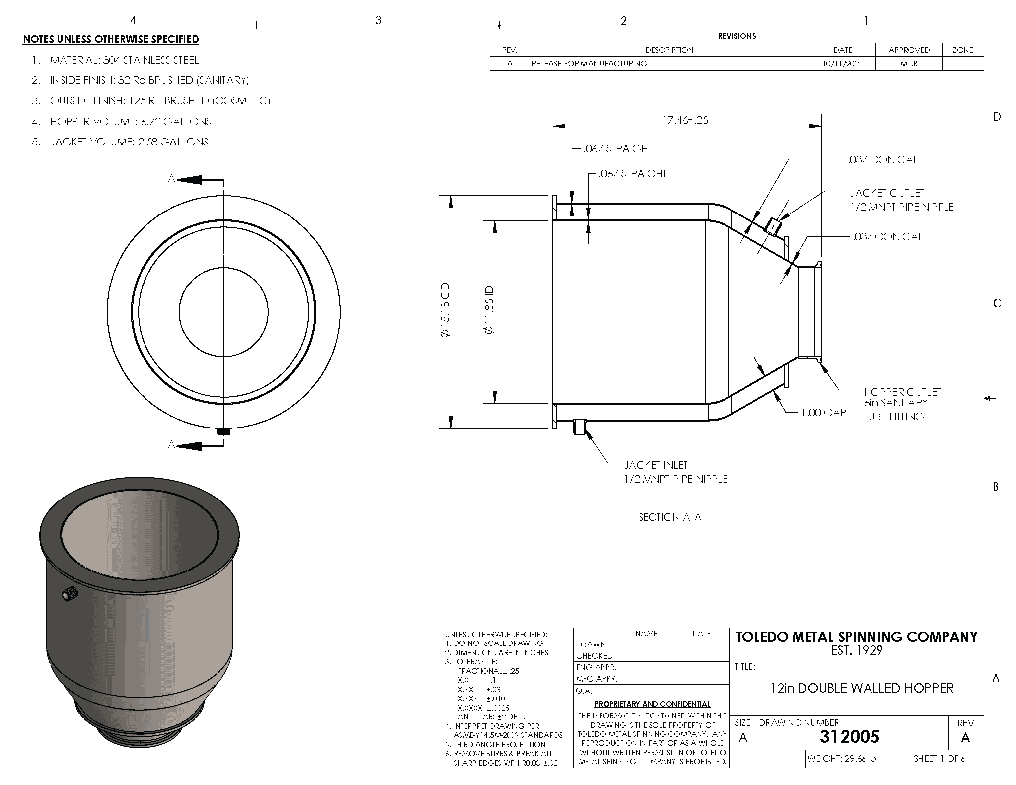 | 312015 | ![]() | Double Walled Funnel 32" Inner Funnel, 6" Sanitary Fitting, 32ra Inside, 125ra Outside | $10,123.77 | ![]() | |