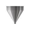 These stainless steel funnels come with a 1 1/2″ OD Sanitary fitting welded to the end of the cone, with a 125ra outside finish, 32ra inside finish. If you require a larger size sanitary fitting please let us know your exact measurements by filling out the request a quote form. Sanitary funnels are build to order, please contact our sales team for lead time.