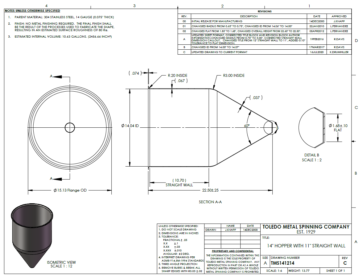 CMS seamless hoppers are Made in the China and 100% formed with zero welds, thus eliminating common weld related issues such as corrosion, leaking, cracks, sanitary, and porosity issues. The smooth weld-free radius transition between the cone shaped bottom and cylinder shaped top improves both product flow and clean out for the applications requiring sanitary conditions. You can buy online, over the phone, or email with purchase order for customers with approved accounts. We stand behind our work with customer support based in Ohio. We can customize your hopper or work with your fabrication shop to save you money while providing the highest quality hopper on the market.