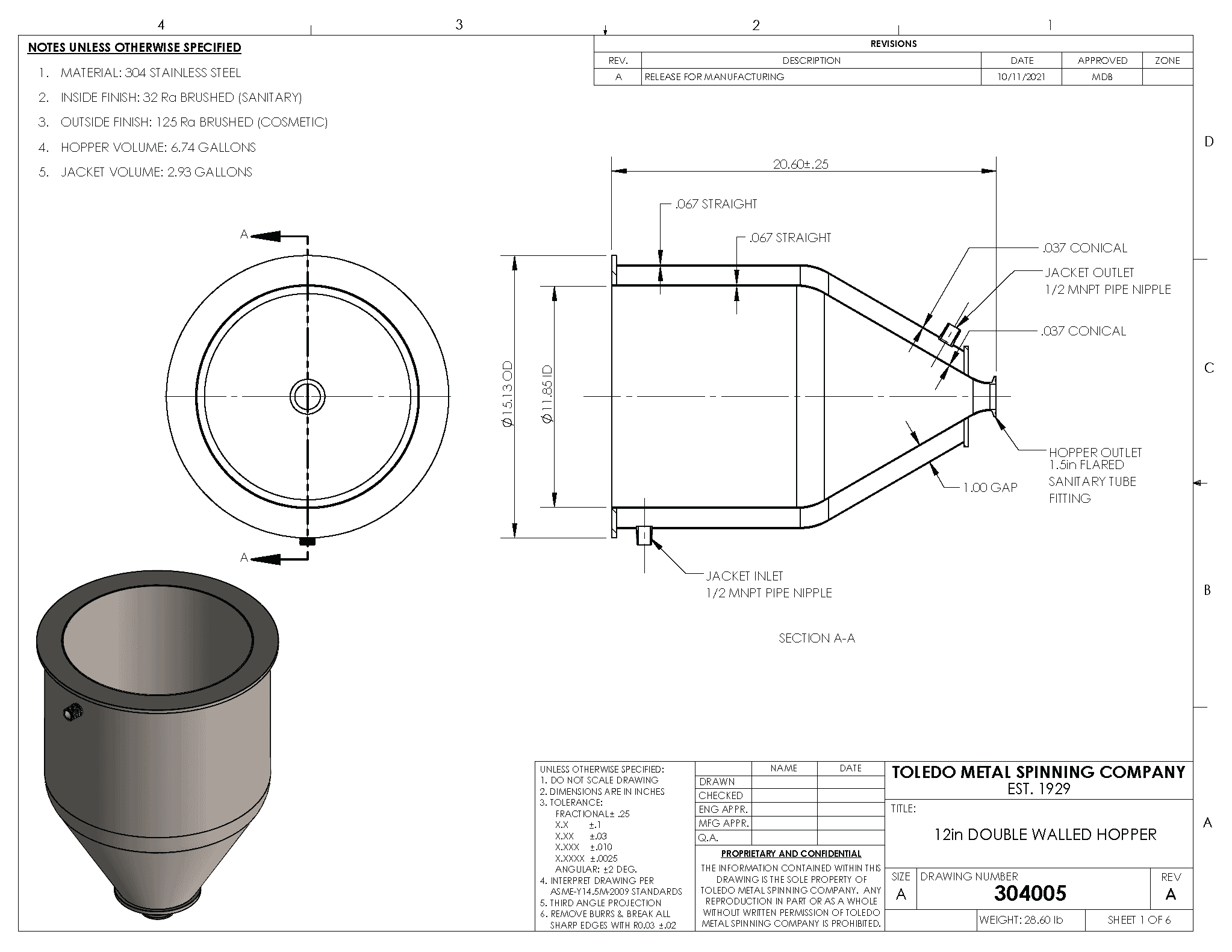 | 304012 | ![]() | Double Walled Funnel 22" Inner Funnel, 1.5" Sanitary Fitting, 32ra Inside, 125ra Outside | $6,745.88 | ![]() | |